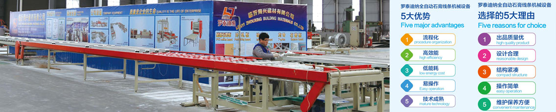 臨沂周興建材(玉興機(jī)械)有限公司始建于2001年7月,專業(yè)研發(fā)、生產(chǎn)全自動鋁蜂窩板生產(chǎn)線,全自動石膏線條生產(chǎn)設(shè)備,石膏吸音板,石膏板沖孔機(jī),PVC貼面石膏天花板機(jī)械(pvc貼面石膏板設(shè)備),主要包含:自動上板機(jī),雙面覆膜機(jī),自動分切鋸,自動包邊機(jī),多用途自動打包機(jī),全自動碼垛機(jī)等。